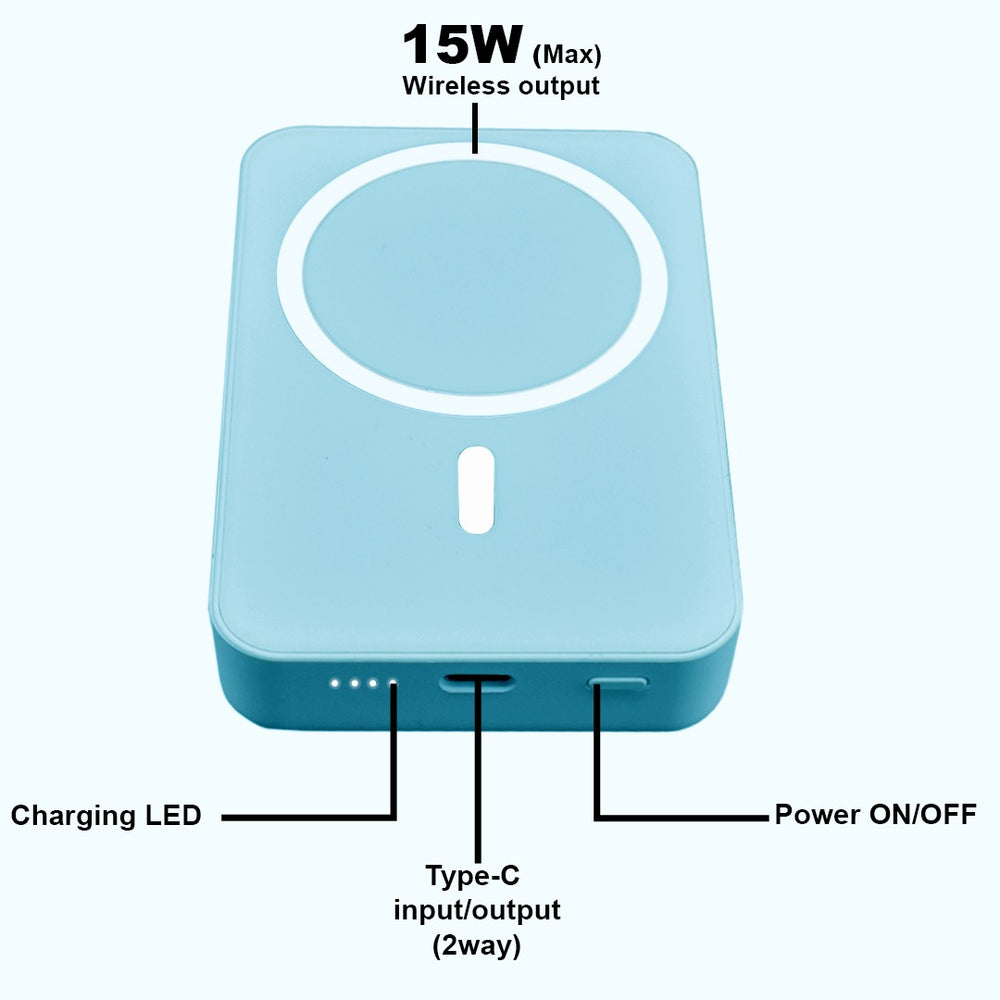 The TexoVera 10000 mAh Wireless MagSafe Power Bank offers efficient charging with its 15W wireless MagSafe compatibility and 22.5W wired output, ensuring rapid power replenishment for your devices. Equipped with a reliable lithium polymer battery, it delivers stable and long-lasting energy in a sleek blue design, making it an essential accessory for seamless mobile power on the go.